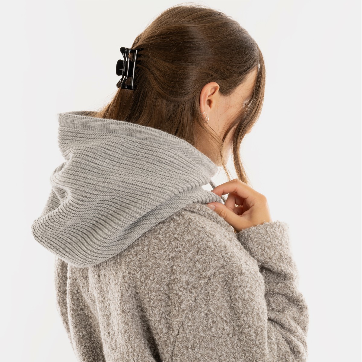 die gemütliche Wärme einer Mütze mit dem weichen Komfort eines Schals.