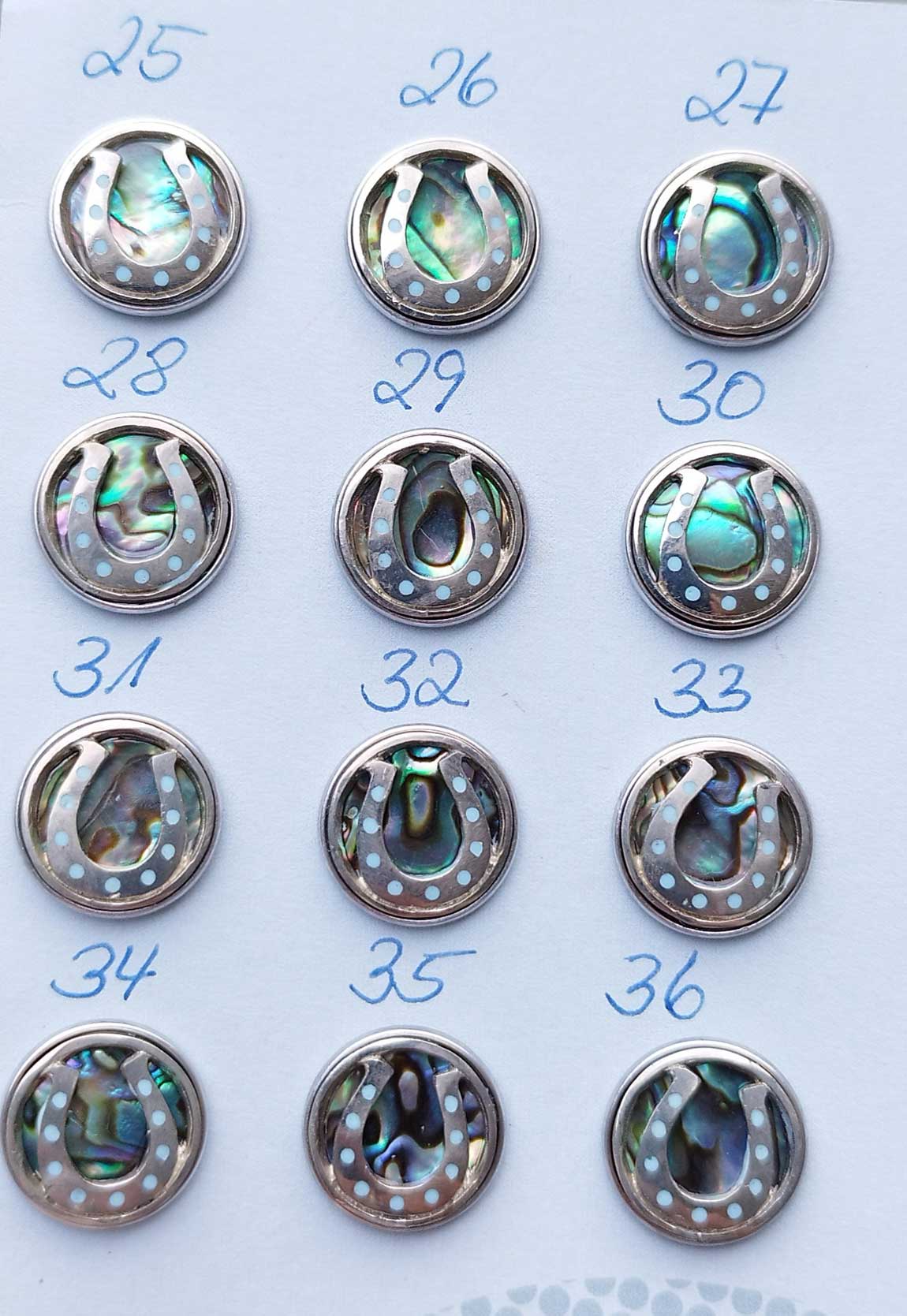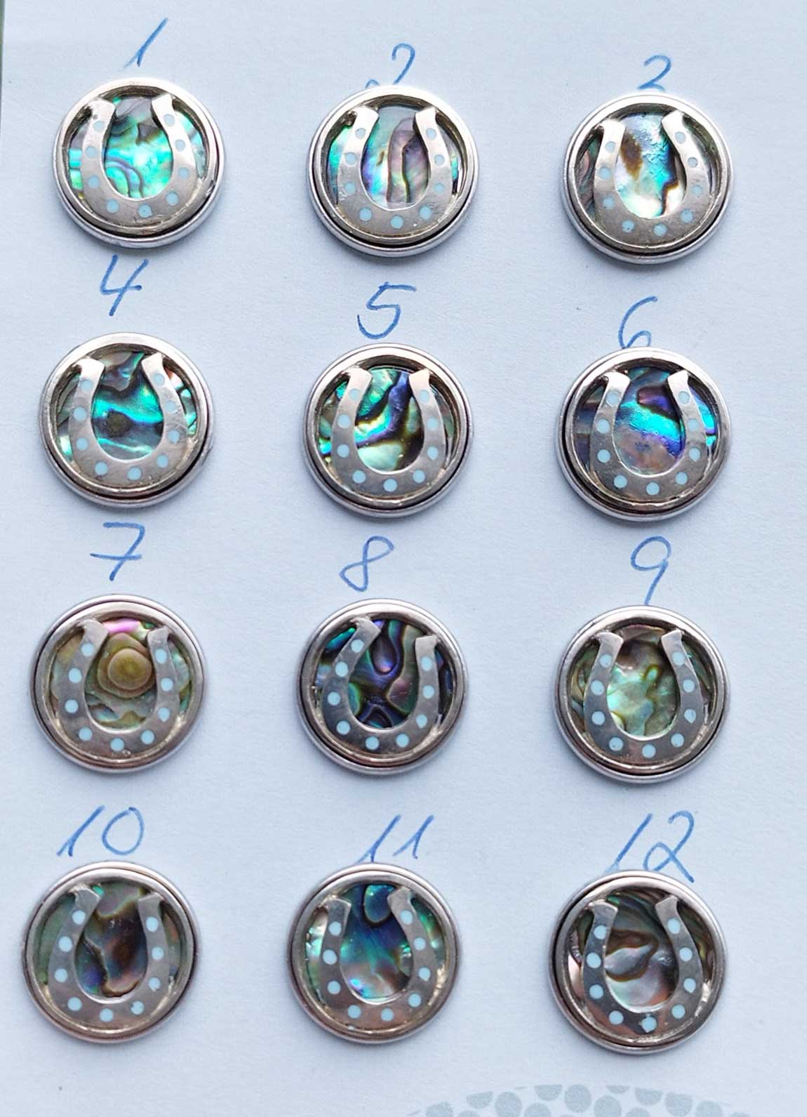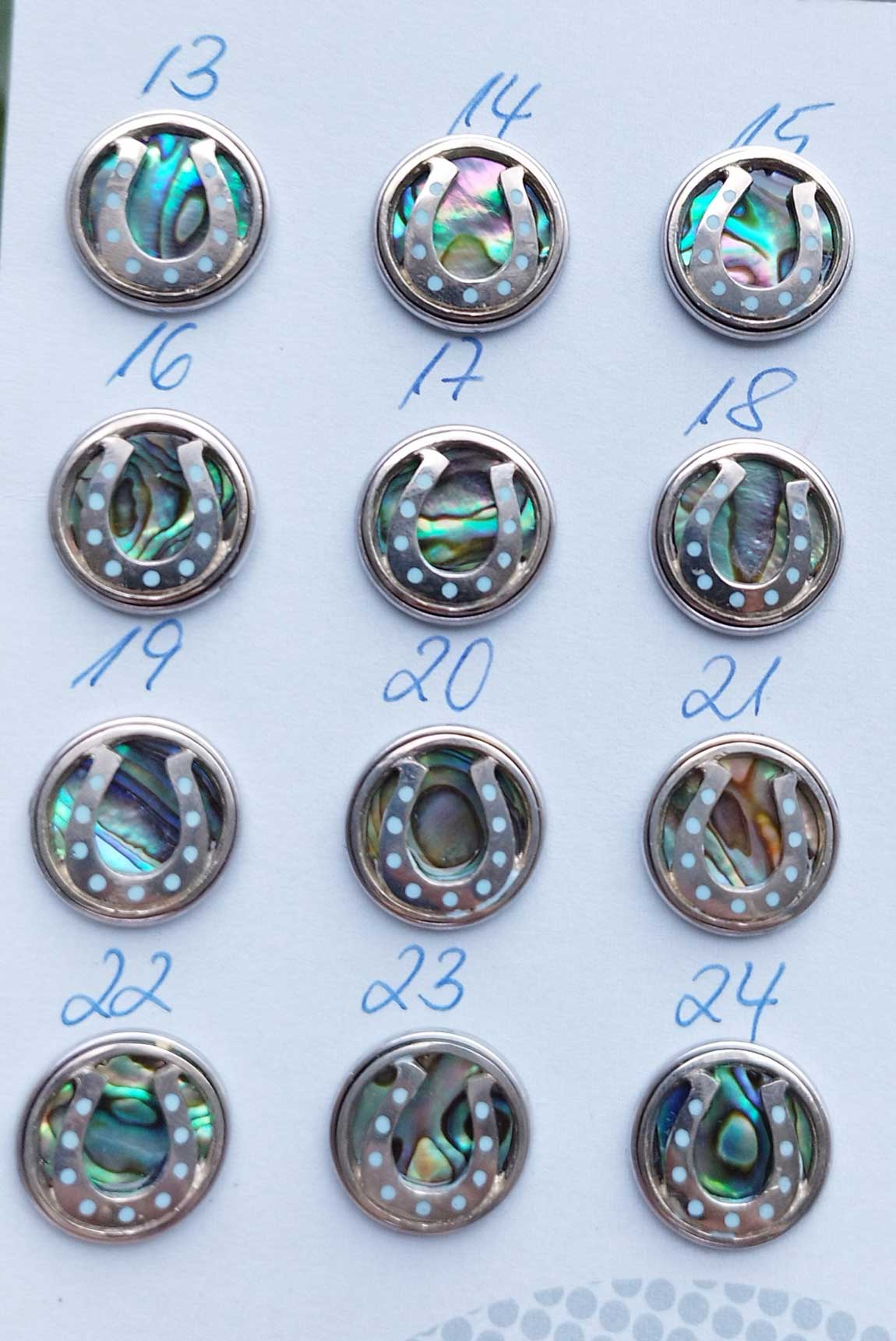 Material: Muschel, Weißmetall, Harz