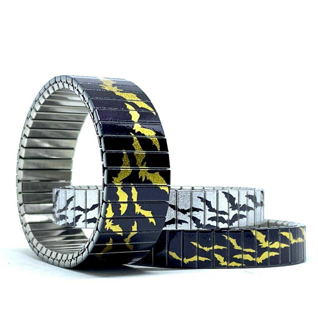 urband LONDON Edelstahlzugarmband BATS Fledermäuse Schwarz Gold Metallic - 22 mm