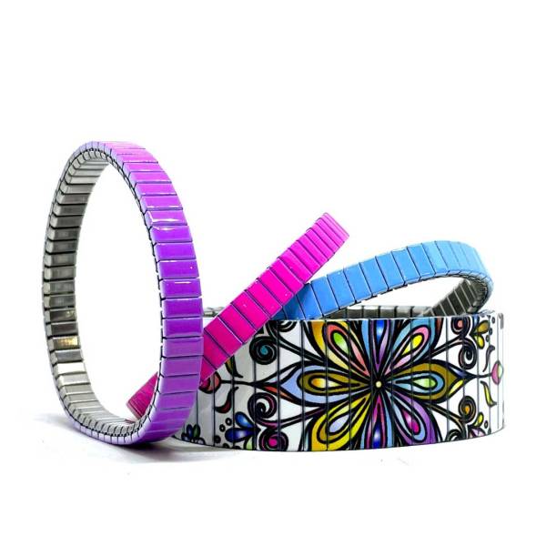 Farbig bedrucktes Edelstahlzugarmband von urband LONDON - innovativ und ausgefallen !
